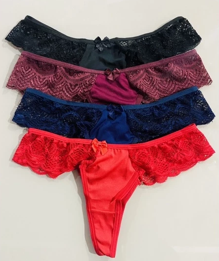 Calcinha Tanga Em Poliamida Microfibra Com Renda Na Lateral Confortaveis Lingerie