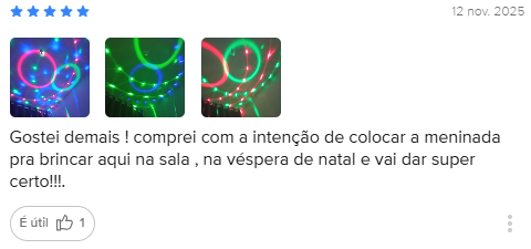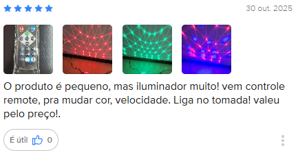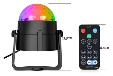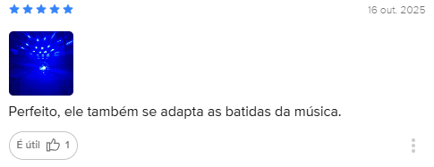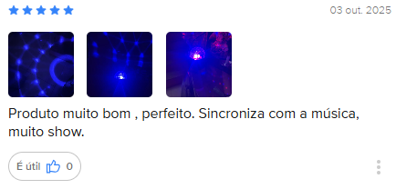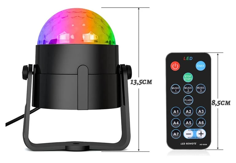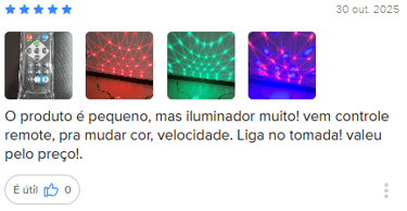 Com sensores ativados por voz, o globo acompanha o ritmo da música e muda automaticamente de cor e velocidade. Você também pode controlar tudo pelo controle remoto: ligar/desligar, trocar modos, ajustar rotação e o flash das luzes. Super prático!